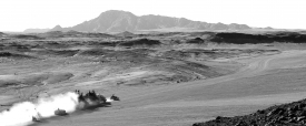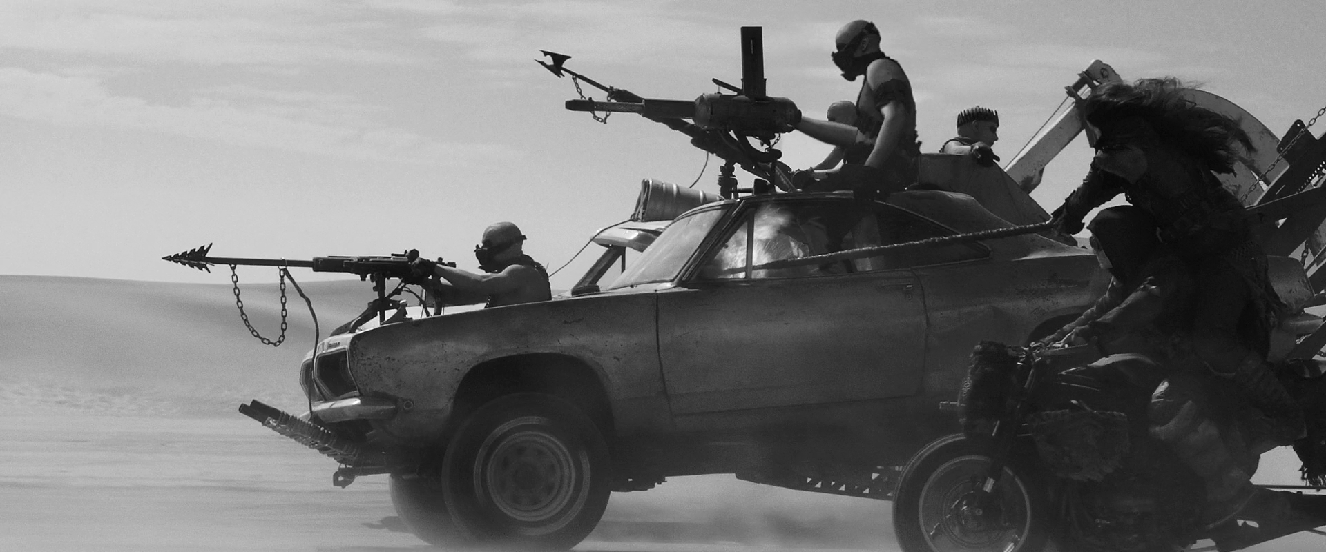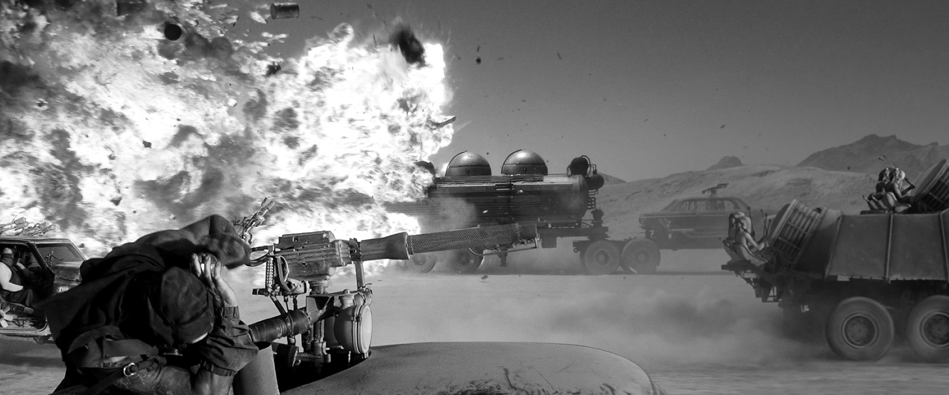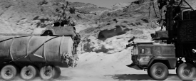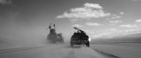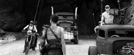 “One thing I’ve noticed is that the default position for everyone is to de-saturate post-apocalyptic movies. There’s only two ways to go, make them black and white — the best version of this movie is black and white, but people reserve that for art movies now. The other version is to really go all-out on the color. The usual teal and orange thing? That’s all the colors we had to work with. The desert’s orange and the sky is teal, and we either could de-saturate it, or crank it up, to differentiate the movie.”